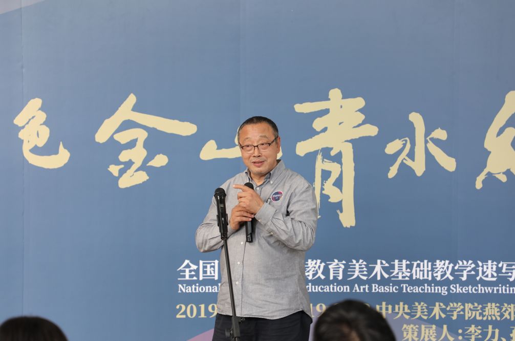 2019年9月7日下午,“绿水青山,金色乡愁"---全国艺术职业教育美术基础教学速写作品巡展 (北京站)如期在中央美术学院燕郊校区美术馆开幕。开幕式由中央美术学院燕郊美术馆馆长吴守峰主持,文化和旅游部科技教育司长、中央美术学院理事会副理事长孙若风,文化和旅游部科技教育司教育处处长何亚文,中央美术学院燕郊校区管理处副主任果庆,中国艺术职业教育学会办公室主任兼副秘书长赵大志和学会美术与设计专业委员会的各位副主任和委员院校的老师们共同出席了开幕式。中国艺术职业教育学会副会长兼秘书长、美术与设计专业委员会主任、中央美术学院教授孙伟,中央美术学院附中校长、中央美术学院教授胡西丹,北京服装学院珠宝首饰设计系主任、美术与设计专业委员会高伟等与会领导及参展师生代表分别致辞和发言,文化和旅游部科技教育司司长、中央美术学院理事会副理事长孙若风宣布展览开幕。